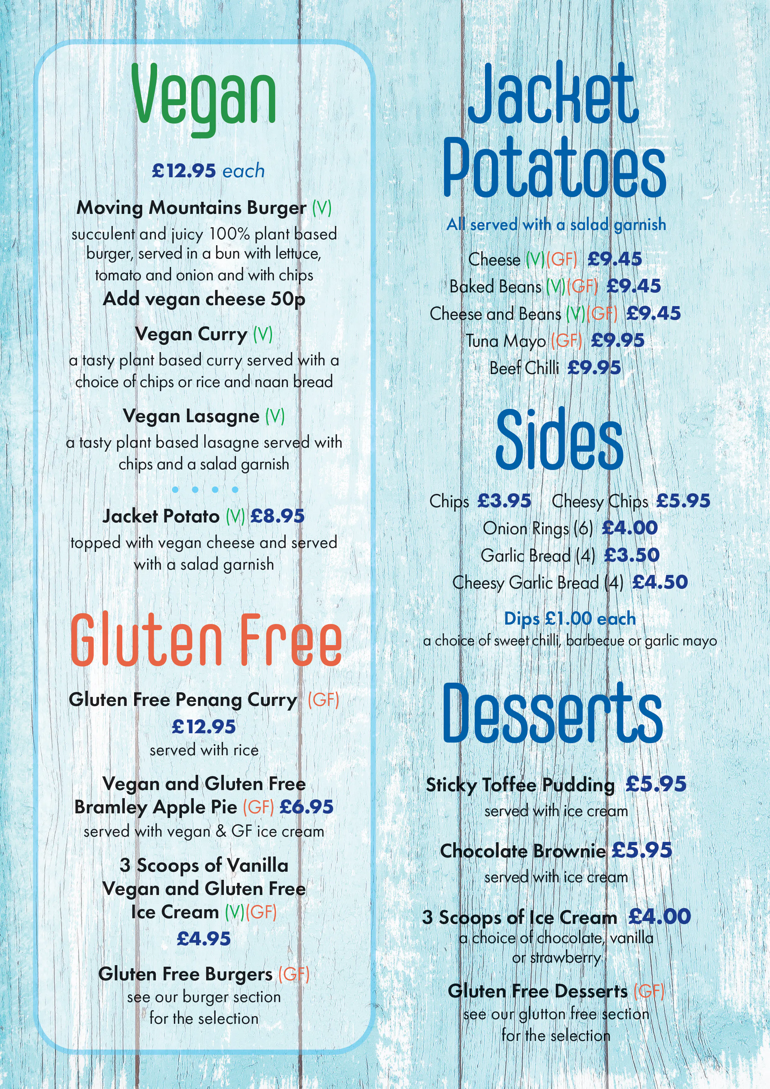 Sample menu (NB items are subject to change)